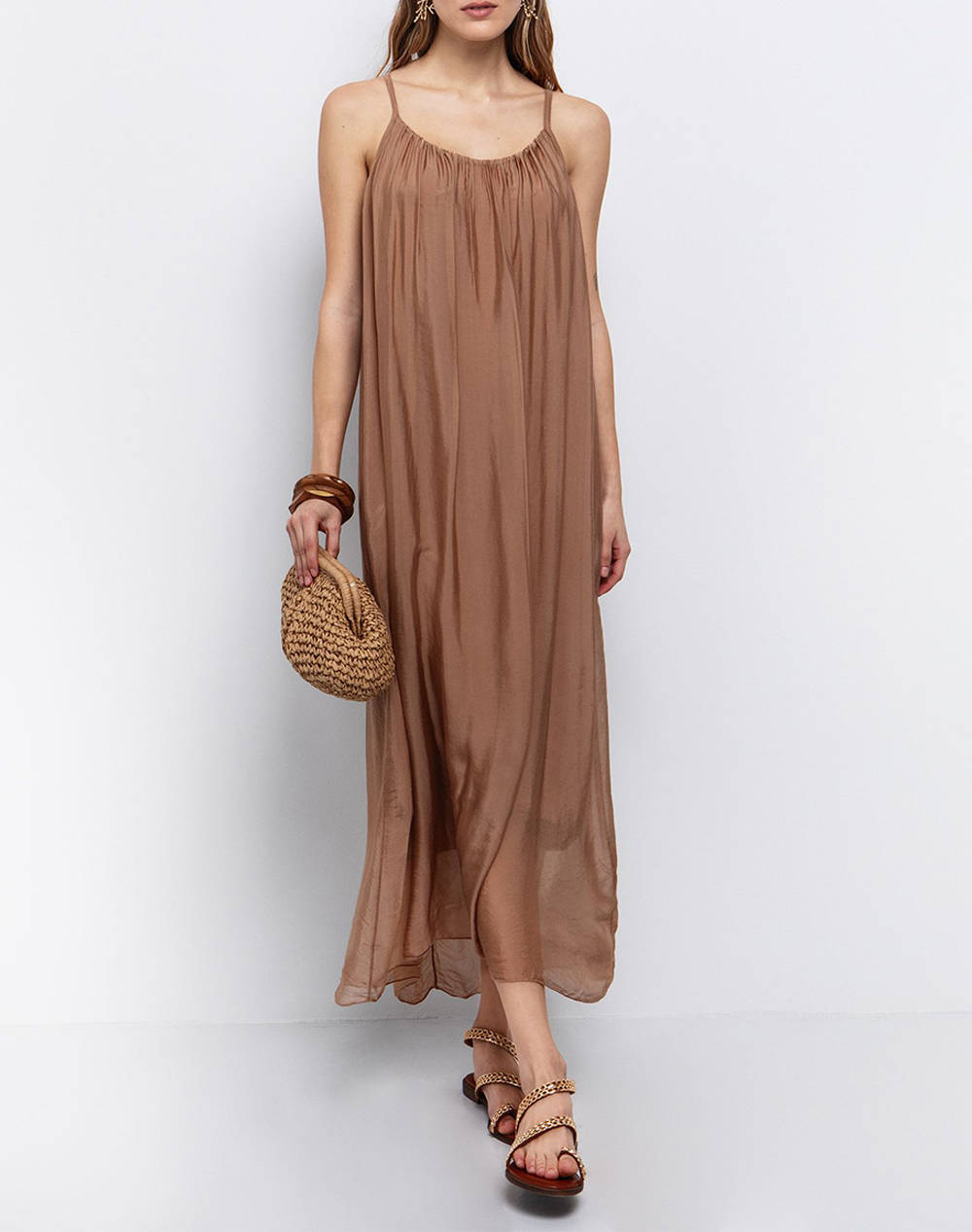 Rochie maxi dama - HiCCUP - elastan/poliester - decolteu in V - inchidere cu nasturi - gri