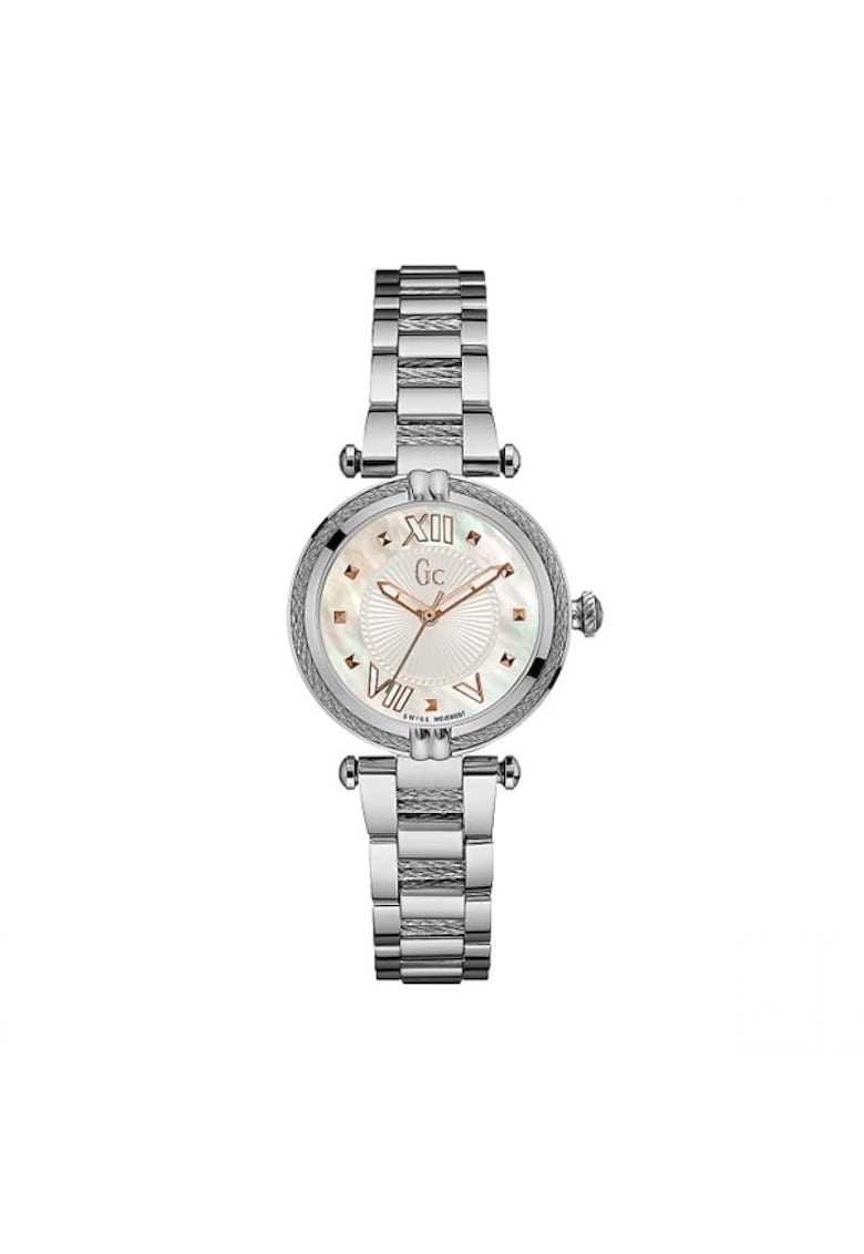 Caracteristici Tip mecanism: quartz Tip display: analog Stil: elegant Functii: minut Sistem inchidere: catarama tip fluture Rezistenta la apa: 10 atm Cadran Material geam: cristal mineral Culoare cadran: mop Tip citire cadran: cifre romane Carcasa Forma carcasa: rotunda Material carcasa: otel Culoare carcasa: argintiu Dimensiune carcasa: 32 x 32 Diametru carcasa: 32 mm Curea/bratara Tip: bratara Material curea/bratara: otel Culoare curea/bratara: argintiu