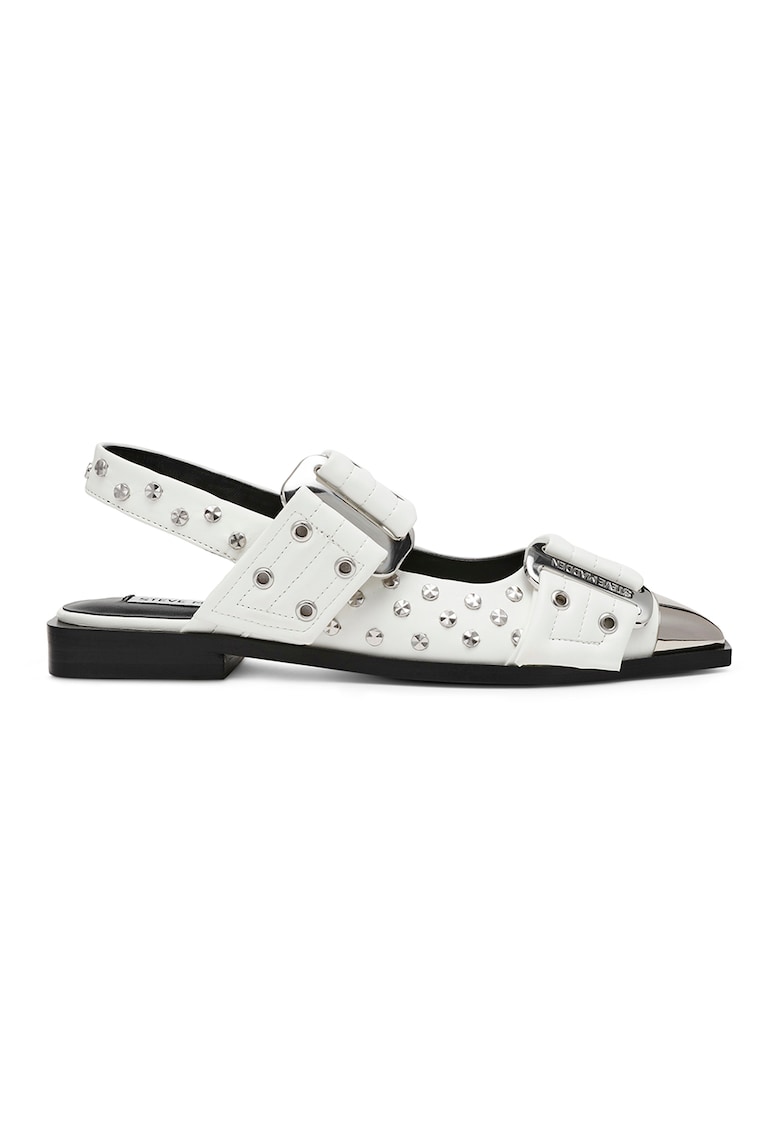 - argintiu Material: piele ecologica Imprimeu: uni Stil: casual Varf: ascutit Detalii: aplicatii cu tinte Sistem inchidere: catarama Compozitie Partea superioara: alte materiale Material interior: alte materiale Material talpa: alte materiale