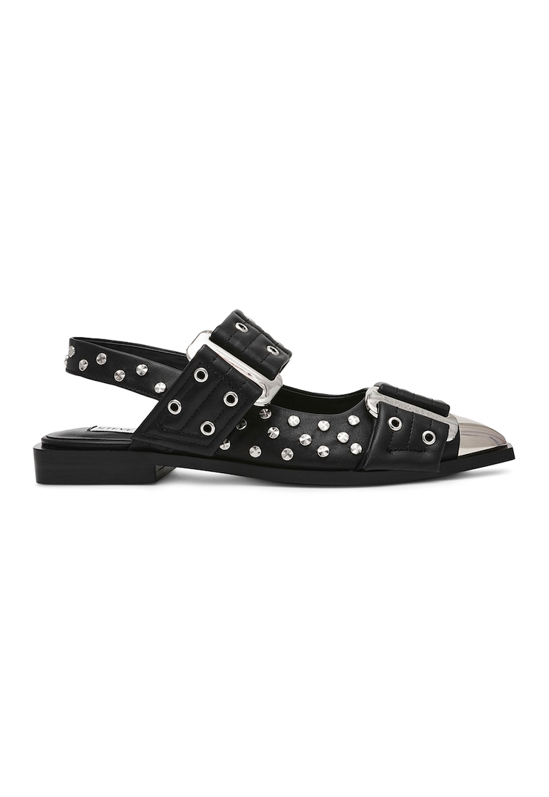 - argintiu Material: piele ecologica Imprimeu: uni Stil: casual Varf: ascutit Detalii: aplicatii cu tinte Sistem inchidere: catarama Compozitie Partea superioara: alte materiale Material interior: alte materiale Material talpa: alte materiale