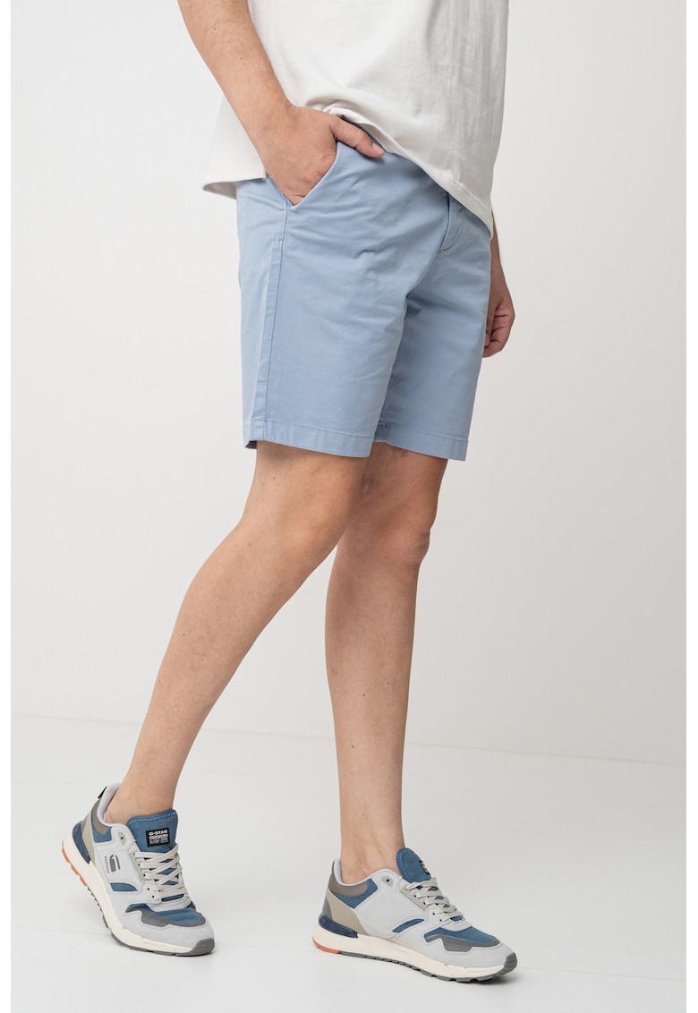 Caracteristici Culoare: albastru deschis Imprimeu: uni Material: bumbac Stil: casual Croiala: regular fit Talie: medie Lungime: scurti Sistem inchidere: fermoar Compozitie Exterior: 98% bumbac
