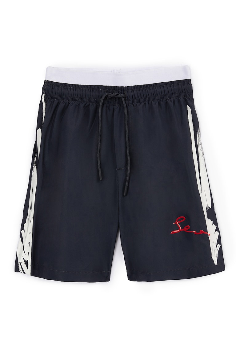- albastru ultramarin Material: sintetic Imprimeu: text Sistem inchidere: fara inchidere Detalii: snur pentru ajustare si insertie elastica in talie Compozitie Exterior: 100% poliester Captuseala: 100% poliester