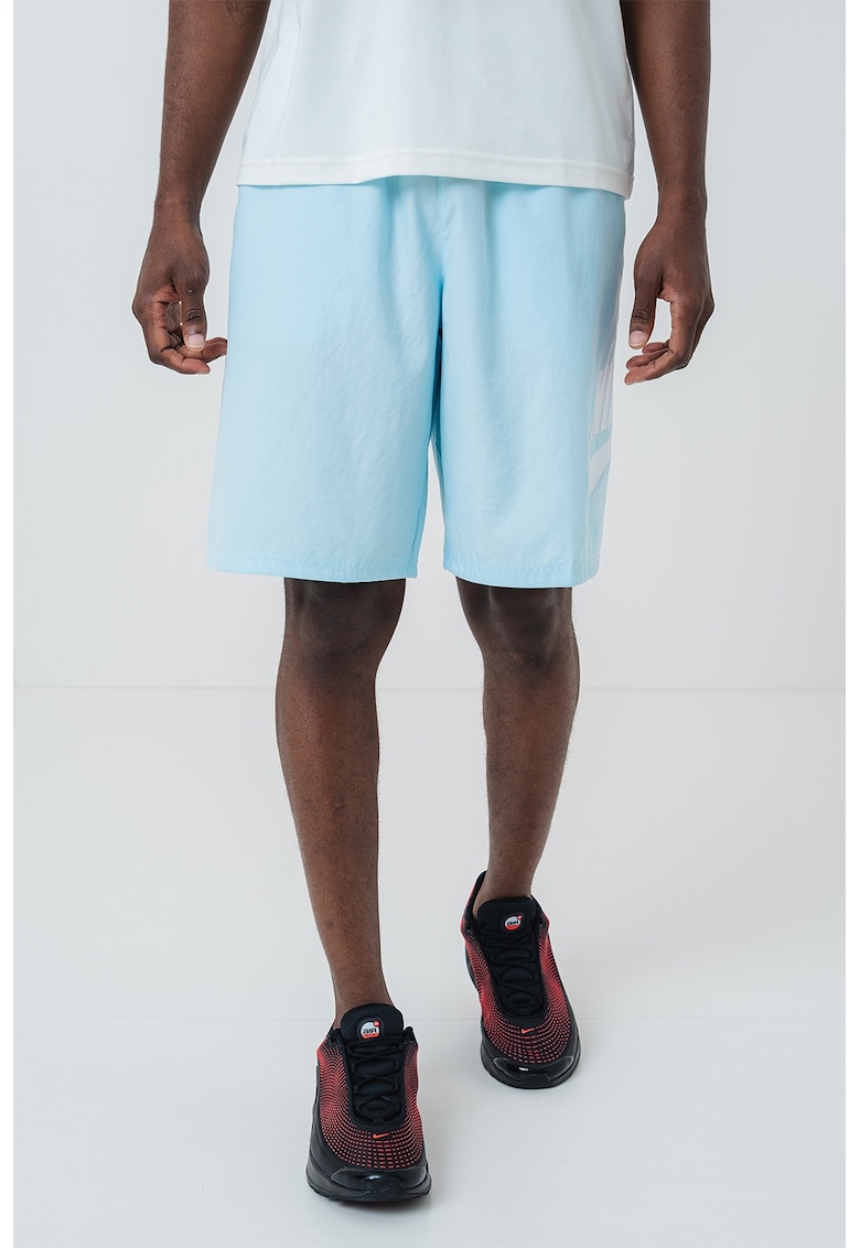 Caracteristici Culoare: albastru pastel Imprimeu: logo Material: poliester Stil: casual Croiala: regular fit Talie: medie Lungime: scurti Detalii: cordon in talie Sistem inchidere: fara inchidere Compozitie Exterior: 100% poliester Info model Modelul poarta un produs de marimea M. Marimi model: 184 cm inaltime