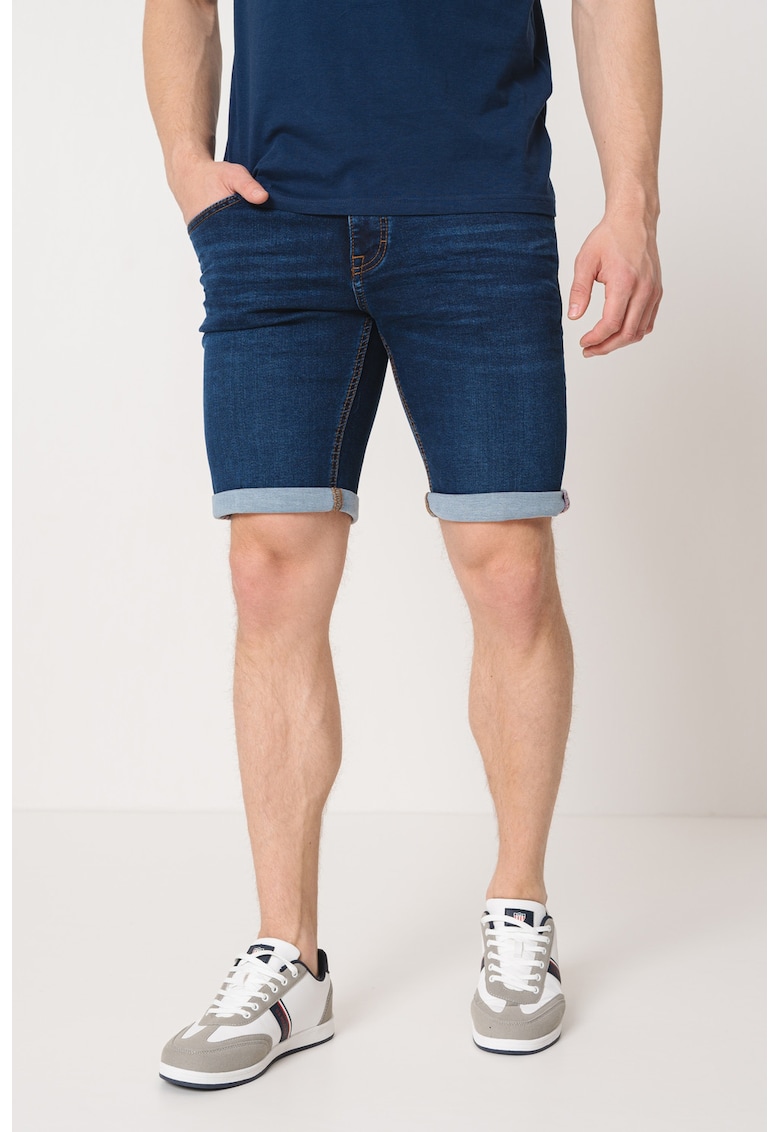 - denim Imprimeu: uni Croiala: regular fit Talie: medie Lungime: trei sferturi Sistem inchidere: fermoar Compozitie Exterior: 89% bumbac