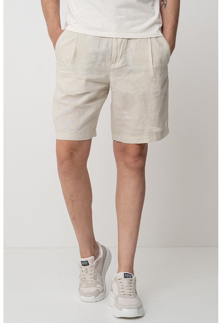 Caracteristici Culoare: alb fildes Imprimeu: uni Material: in Stil: casual Croiala: regular fit Talie: medie Lungime: scurti Sistem inchidere: fermoar Compozitie Exterior: 100% in Info model Modelul poarta un produs de marimea 46. Marimi model: 195 cm inaltime