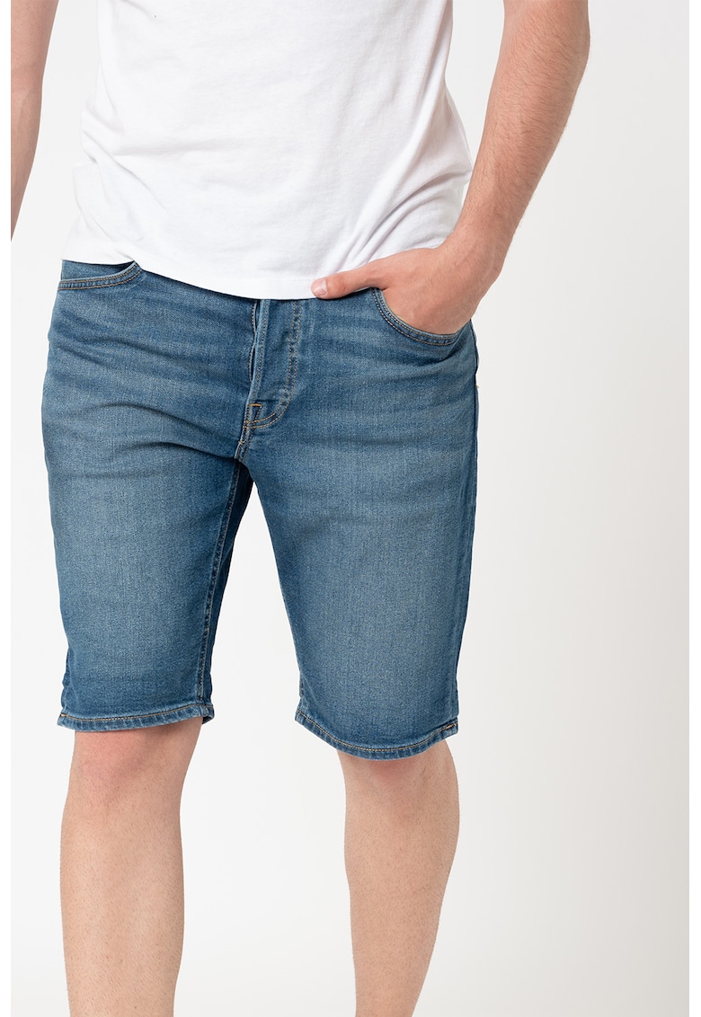 - albastru inchis Imprimeu: uni Material: bumbac Stil: casual Croiala: regular fit Talie: joasa Buzunare: 5 Lungime: scurti Sistem inchidere: nasturi Compozitie Exterior: 84% bumbac