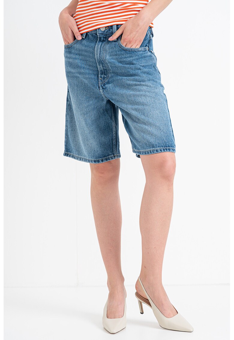 Caracteristici Culoare: albastru deschis Imprimeu: uni Croiala: relaxed fit Material: denim Talie: medie Lungime: scurti Buzunare: 5 Sistem inchidere: fermoar Compozitie Exterior: 80% bumbac