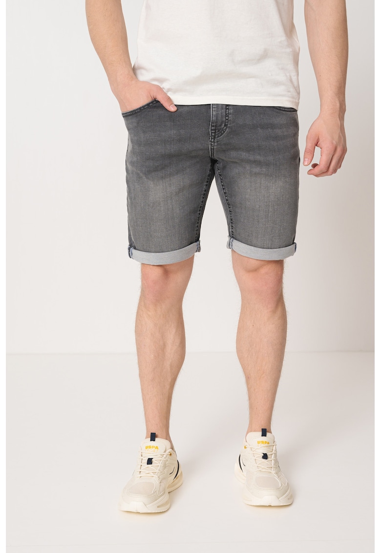 - denim Imprimeu: uni Croiala: regular fit Talie: medie Lungime: scurti Sistem inchidere: fermoar Compozitie Exterior: 85% bumbac