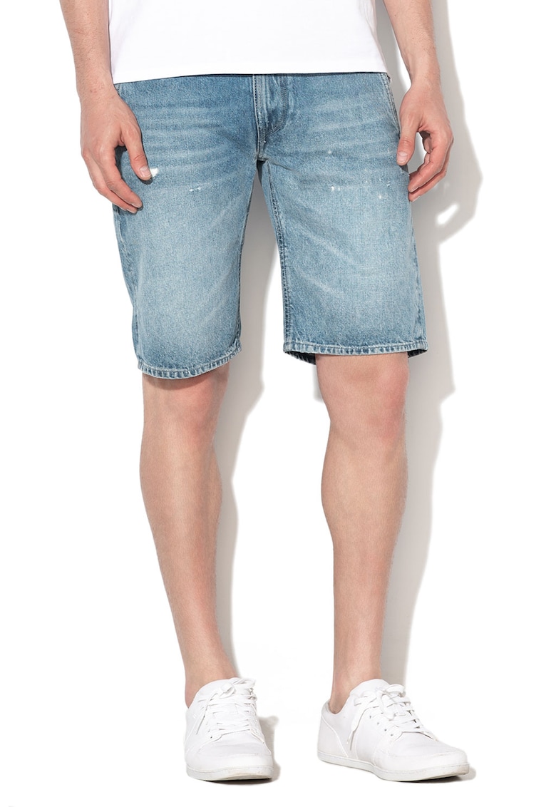 Caracteristici Culoare: albastru deschis Material: denim Imprimeu: uni Croiala: regular fit Talie: medie Lungime: scurti Compozitie Exterior: 100% bumbac Info model Modelul poarta un produs de marimea 32. Marimi model: 188 cm inaltime