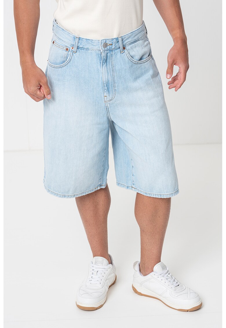 Caracteristici Culoare: albastru deschis Material: denim Croiala: relaxed fit Talie: medie Lungime: scurti Buzunare: pe partea din fata si pe partea din spate Compozitie Exterior: 100% bumbac organic Info model Modelul poarta un produs de marimea M. Marimi model: 179 cm inaltime