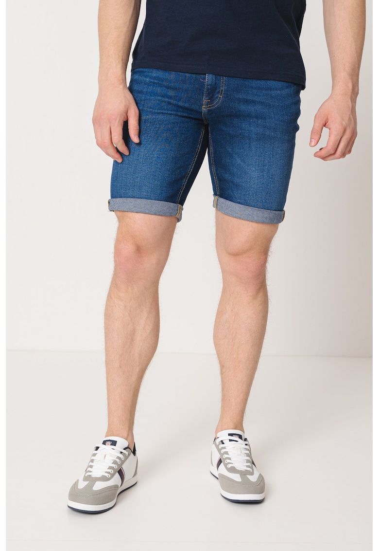 Caracteristici Culoare: albastru inchis Material: denim Imprimeu: uni Croiala: skinny Talie: medie Lungime: scurti Buzunare: 5 Sistem inchidere: fermoar Compozitie Exterior: 99% bumbac