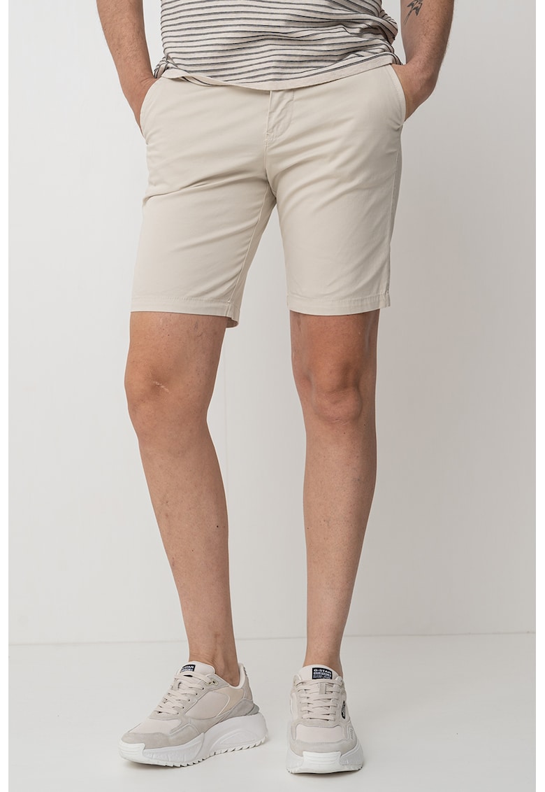 - alb murdar Imprimeu: uni Material: bumbac Stil: casual Croiala: slim fit Talie: medie Buzunare: 4 Lungime: scurti Sistem inchidere: fermoar Compozitie Exterior: 96% bumbac
