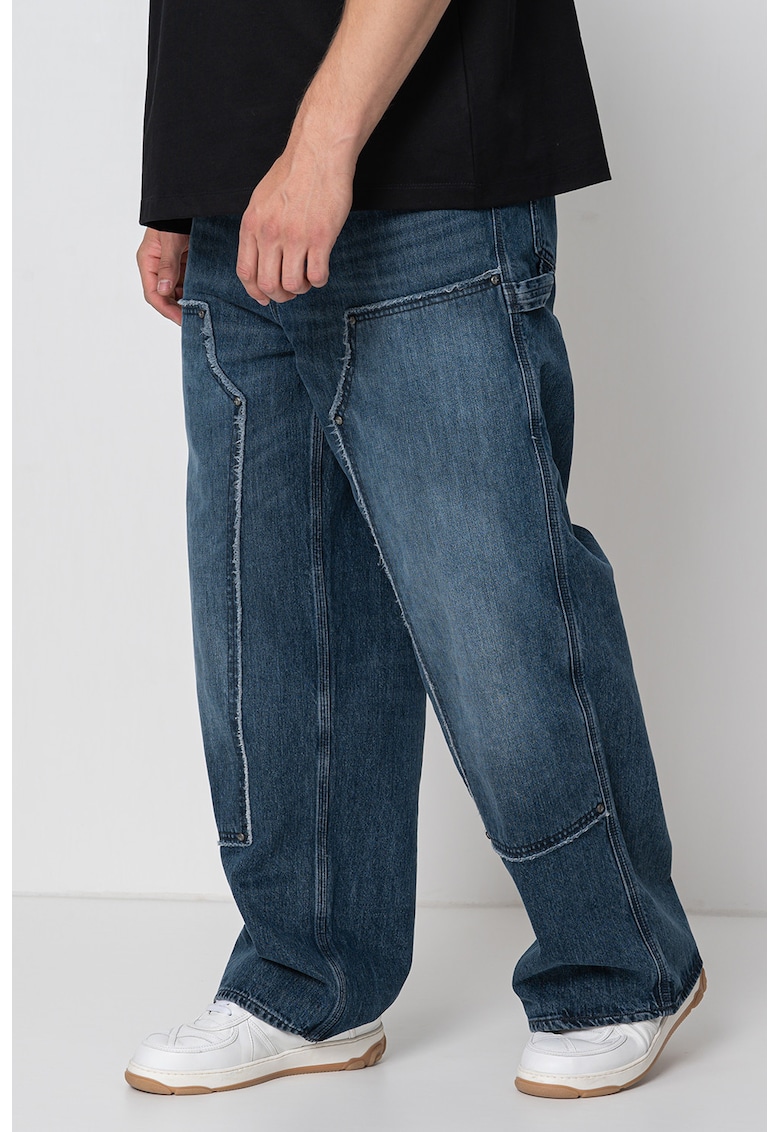 Caracteristici Culoare: albastru inchis melange Material: denim Imprimeu: uni Croiala: relaxed fit Talie: medie Lungime: lungi Buzunare: laterale Sistem inchidere: fermoar Compozitie Exterior: 100% bumbac Info model Modelul poarta un produs de marimea W32-L32. Marimi model: 186 cm inaltime