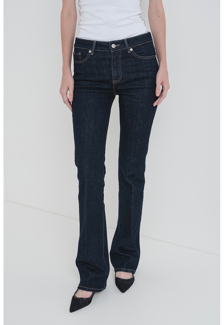 Caracteristici Culoare: bleumarin Imprimeu: uni Croiala: bootcut Material: denim Talie: medie Lungime: lungi Buzunare: 5 Sistem inchidere: fermoar