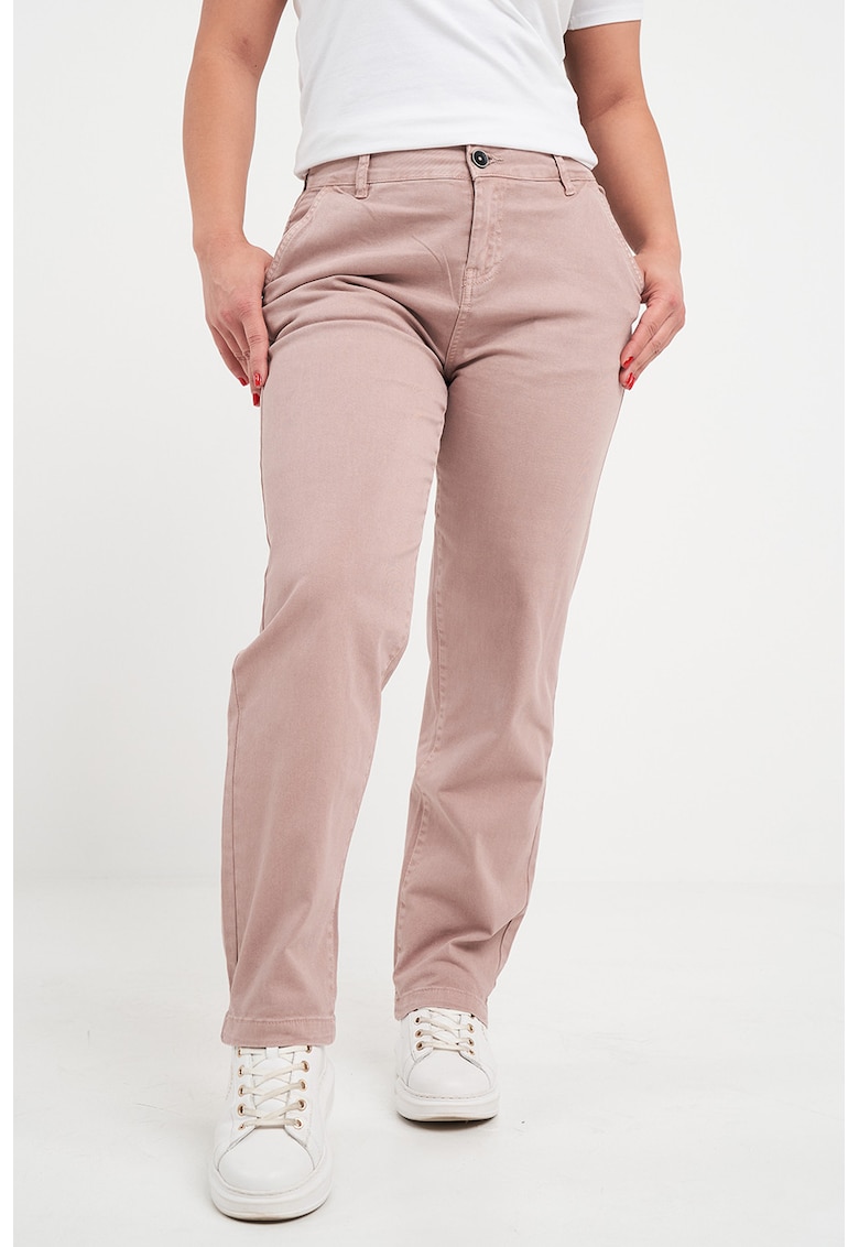 Caracteristici Culoare: roz pal Imprimeu: uni Croiala: regular fit Material: denim Talie: medie Lungime: lungi Buzunare: cu refilet pe partea din spate