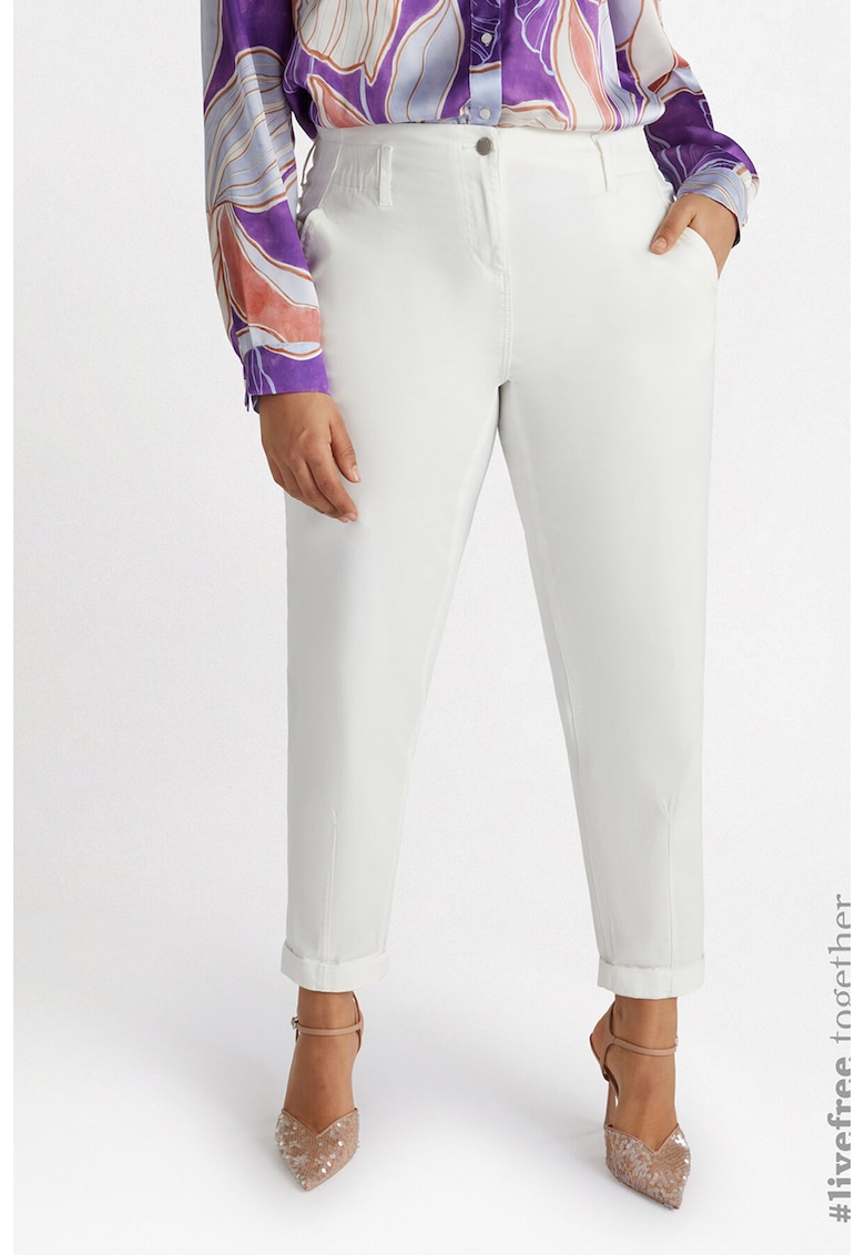 - bumbac Talie: inalta Lungime: lungi Buzunare: 4 Sistem inchidere: fermoar Detalii: acest produs se adreseaza femeilor cu forme pline (plus size). Compozitie Exterior: 88% bumbac