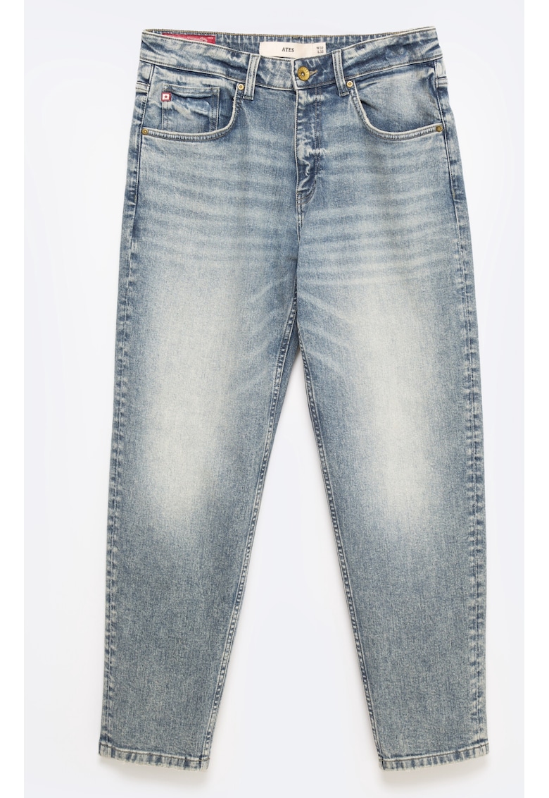 - denim Imprimeu: uni Croiala: conica Talie: medie Lungime: lungi Buzunare: 5 buzunare Detalii: aspect decolorat