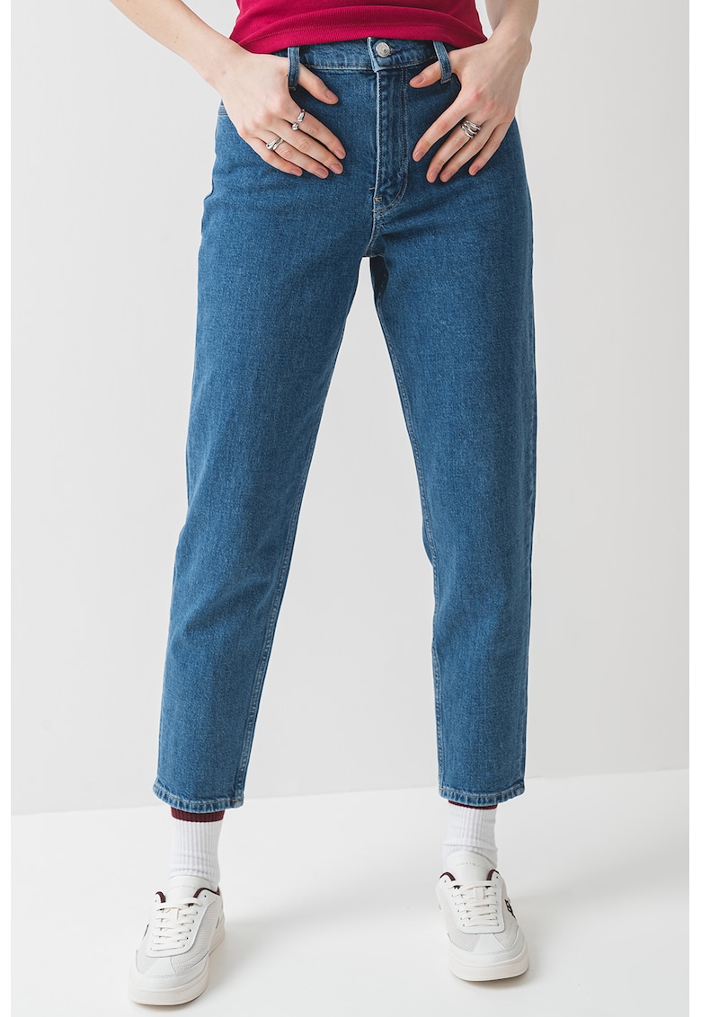Caracteristici Imprimeu: uni Croiala: dreapta Material: denim Talie: inalta Lungime: lungi Buzunare: 5 Compozitie Exterior: 79% bumbac