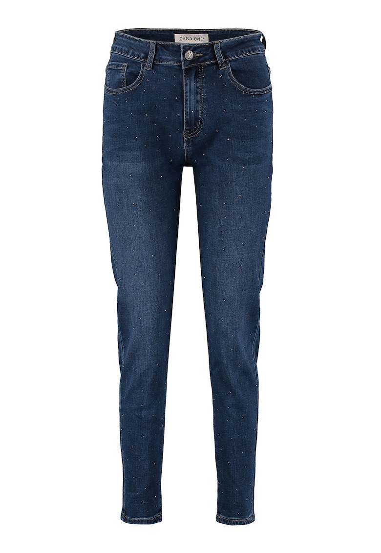 Caracteristici Culoare: albastru inchis Imprimeu: uni Croiala: slim fit Material: denim Talie: medie Lungime: lungi Buzunare: 5 Sistem inchidere: fermoar Detalii: aplicatii din strasuri Compozitie Exterior: 70% bumbac