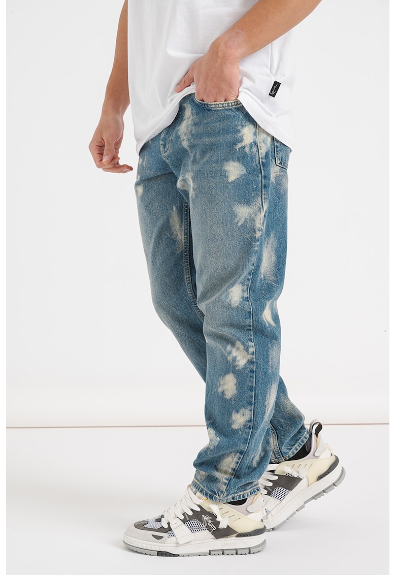 Caracteristici Culoare: albastru prafuit Material: denim Imprimeu: cu model Croiala: regular fit Talie: medie Lungime: lungi Compozitie Exterior: 100% bumbac reciclat Info model Modelul poarta un produs de marimea W32-L30. Marimi model: 179 cm inaltime