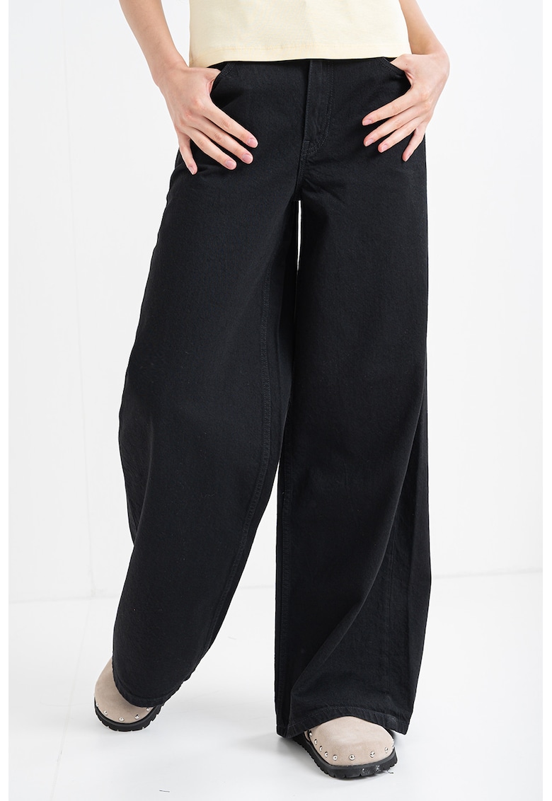 Caracteristici Culoare: negru Imprimeu: uni Croiala: croiala ampla Material: denim Talie: medie Lungime: lungi Buzunare: 5 Compozitie Exterior: 70% bumbac