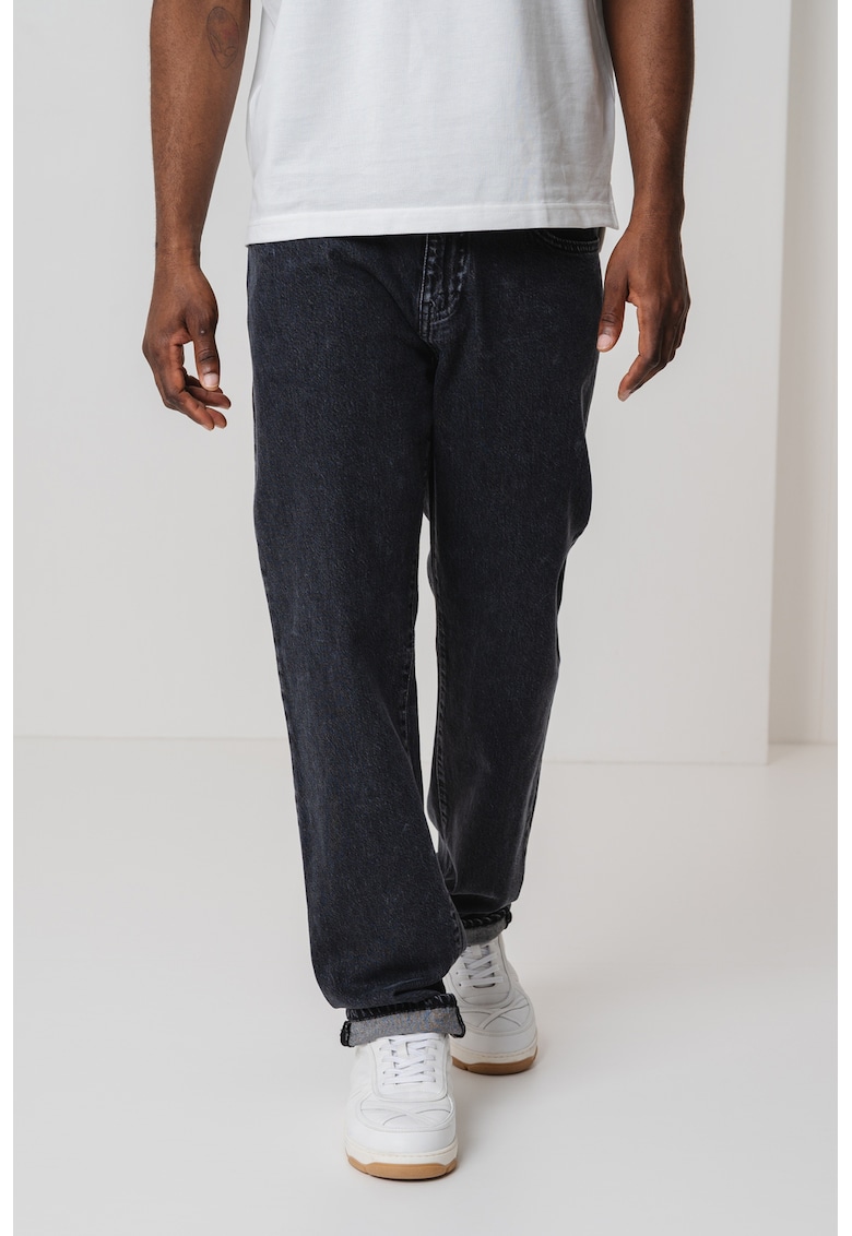 Caracteristici Culoare: gri antracit Material: denim Imprimeu: uni Croiala: dreapta Talie: joasa Lungime: lungi Buzunare: 5 Detalii: aspect decolorat Sistem inchidere: fermoar Compozitie Exterior: 100% bumbac Info model Modelul poarta un produs de marimea 32. Marimi model: 184 cm inaltime