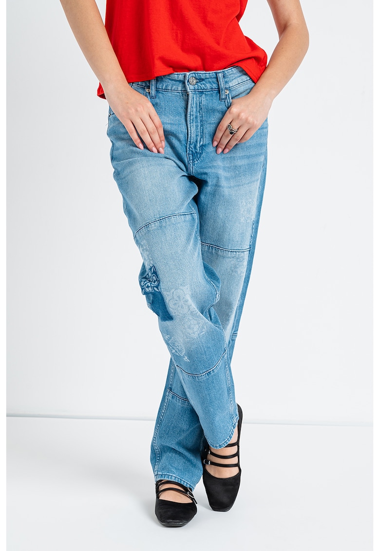 Caracteristici Culoare: albastru Imprimeu: grafic Croiala: relaxed fit Material: denim Talie: medie Lungime: lungi Sistem inchidere: fermoar Detalii: aspect decolorat Compozitie Exterior: 99% bumbac