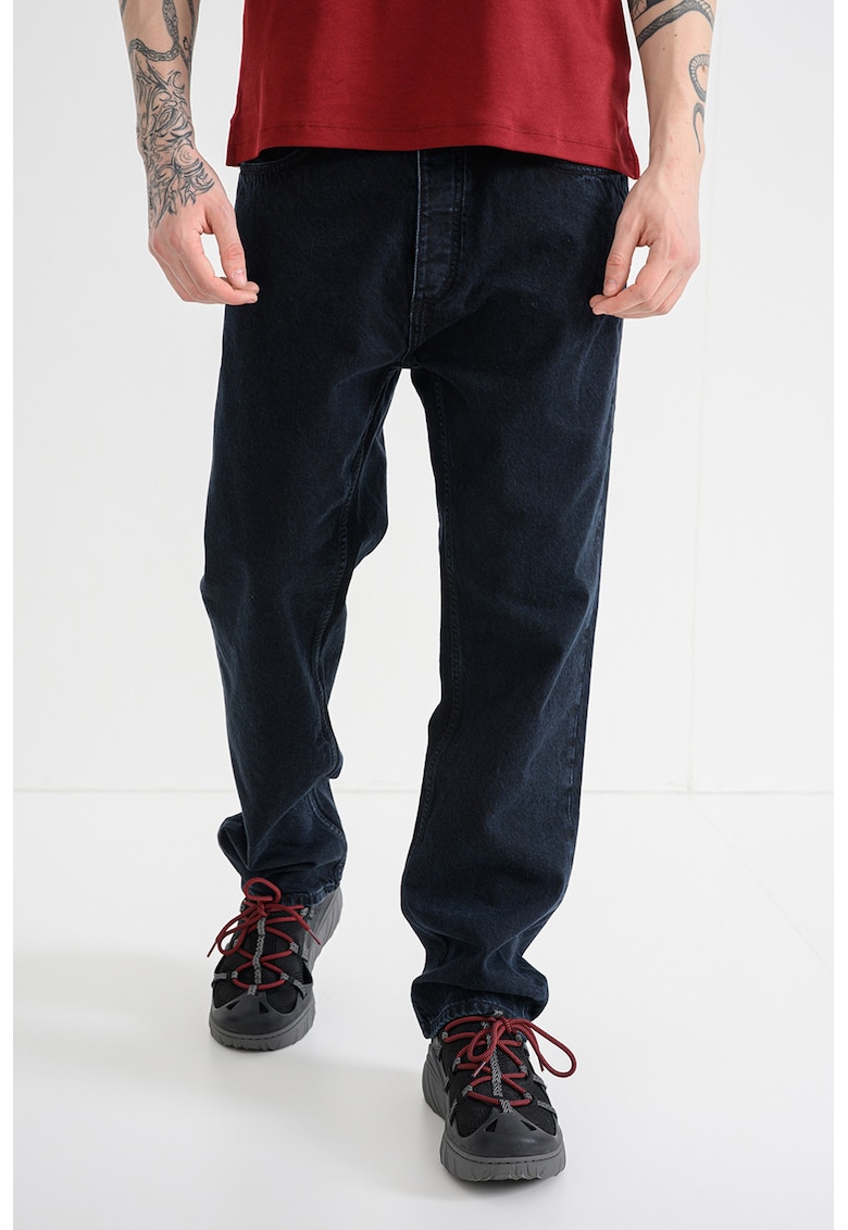 Caracteristici Culoare: negru stins Material: denim Imprimeu: uni Croiala: regular fit Talie: medie Lungime: lungi Buzunare: 5 Sistem inchidere: nasturi Compozitie Exterior: 100% bumbac Info model Modelul poarta un produs de marimea W32-L32. Marimi model: 188 cm inaltime