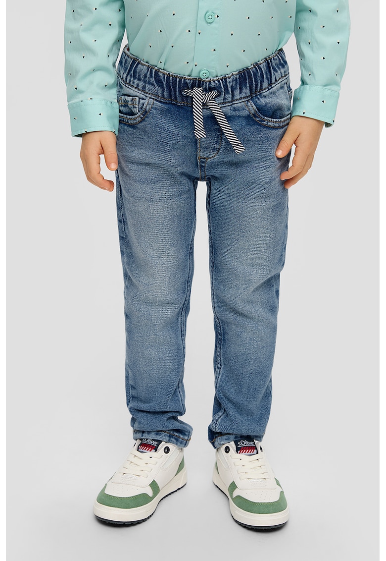 Caracteristici Tip produs: blugi Culoare: albastru deschis Material: bumbac Stil: casual Imprimeu: uni Talie: medie Buzunare: 5 buzunare Detalii: cordon in talie Sistem inchidere: fara inchidere Colectie: primavara
