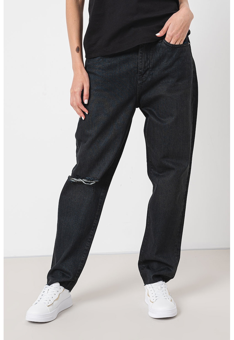 Caracteristici Culoare: gri inchis melange Imprimeu: uni Croiala: dreapta Material: bumbac Talie: medie Lungime: lungi Buzunare: 5 Detalii: bucle pentru curea Compozitie Exterior: 100% bumbac Info model Modelul poarta un produs de marimea 27. Marimi model: 175 cm inaltime
