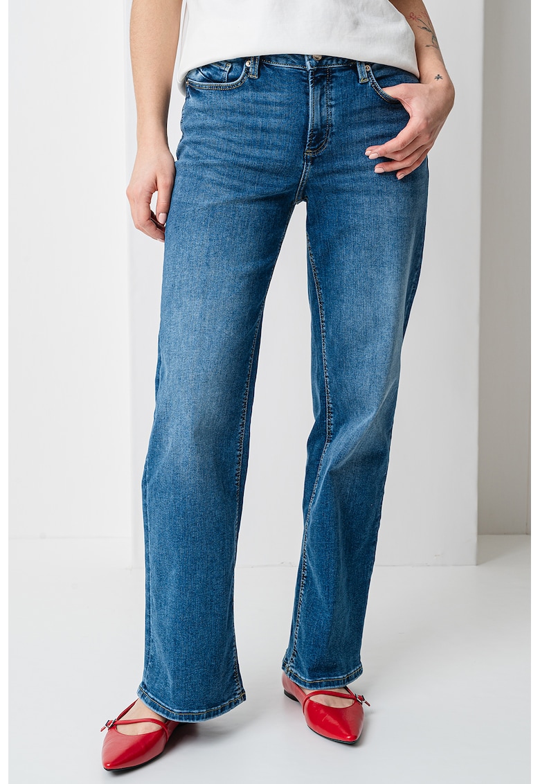 Caracteristici Culoare: albastru Imprimeu: uni Croiala: dreapta Material: denim Talie: inalta Lungime: lungi Buzunare: 5 Sistem inchidere: fermoar Compozitie Exterior: 99% bumbac
