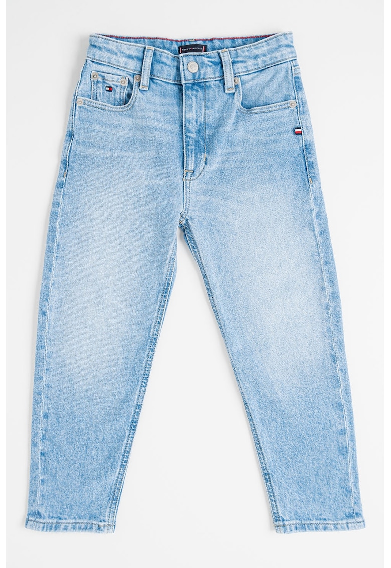 Caracteristici Tip produs: blugi Culoare: albastru deschis Material: denim Stil: casual Imprimeu: uni Croiala: dreapta Talie: medie Buzunare: 5 Detalii: aspect decolorat