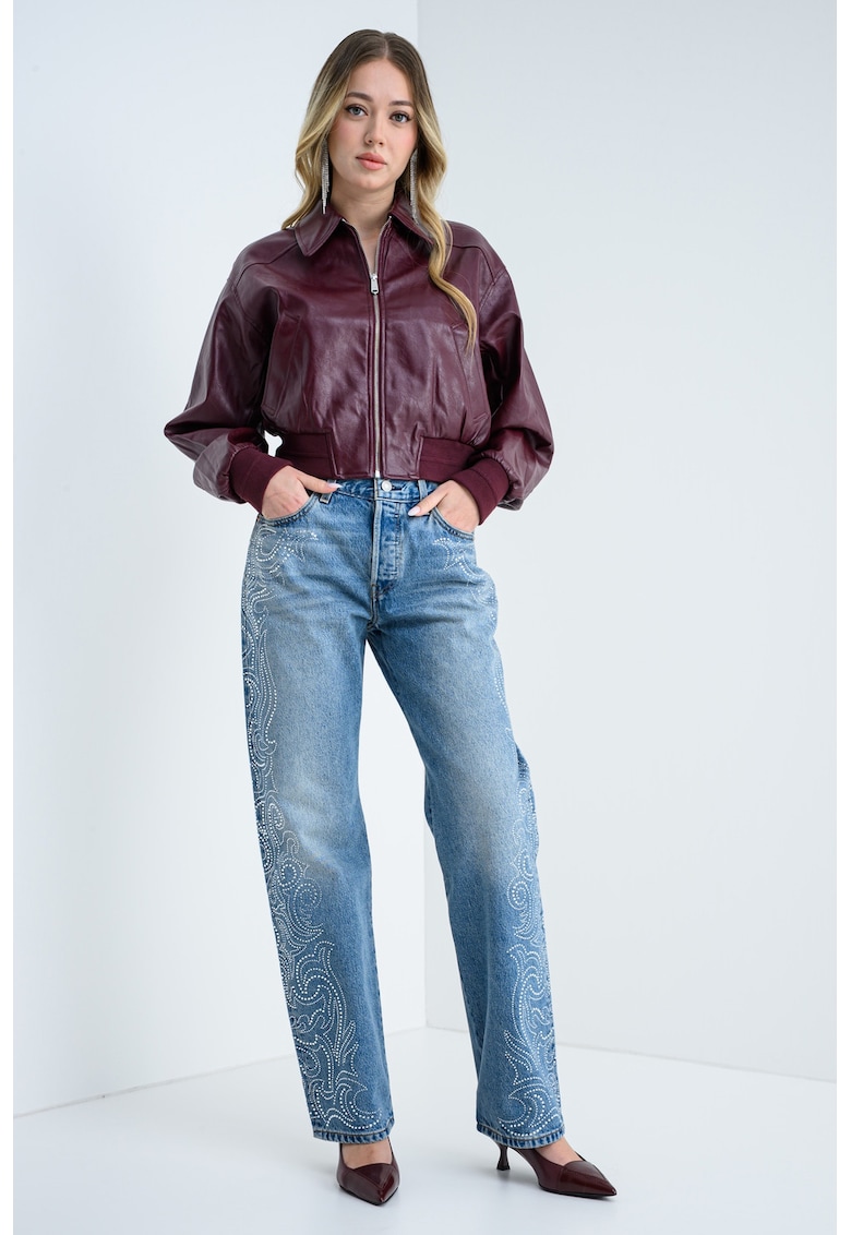 - transparent Croiala: dreapta Material: bumbac Talie: medie Lungime: lungi Buzunare: 5 buzunare Sistem inchidere: nasturi Detalii: aplicatii din strasuri Compozitie Exterior: 100% bumbac Info model Modelul poarta un produs de marimea W27-L32. Marimi model: 175 cm inaltime