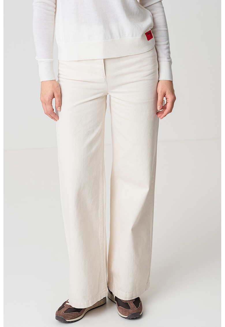 Caracteristici Culoare: alb fildes Imprimeu: uni Croiala: croiala ampla Material: denim Talie: inalta Lungime: lungi Buzunare: 2 oblice