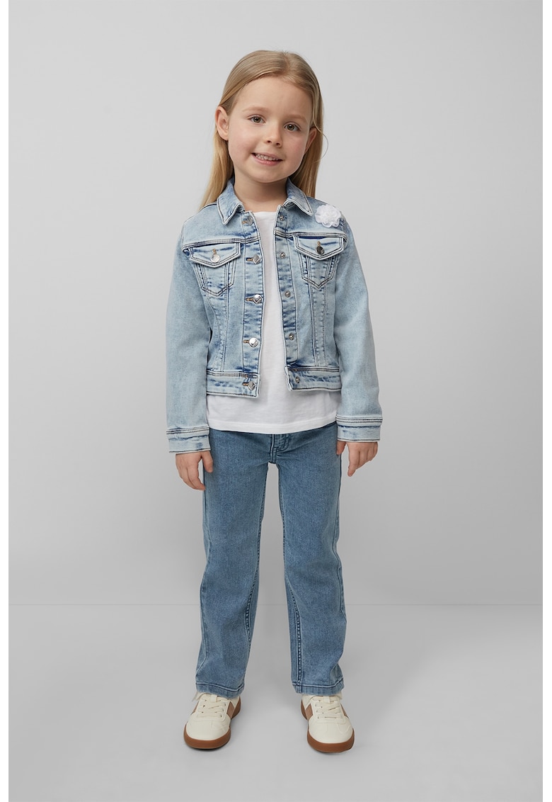 Caracteristici Tip produs: blugi Culoare: albastru melange Material: denim Stil: casual Imprimeu: uni Croiala: dreapta Talie: medie Buzunare: 5 Sistem inchidere: fermoar Colectie: primavara