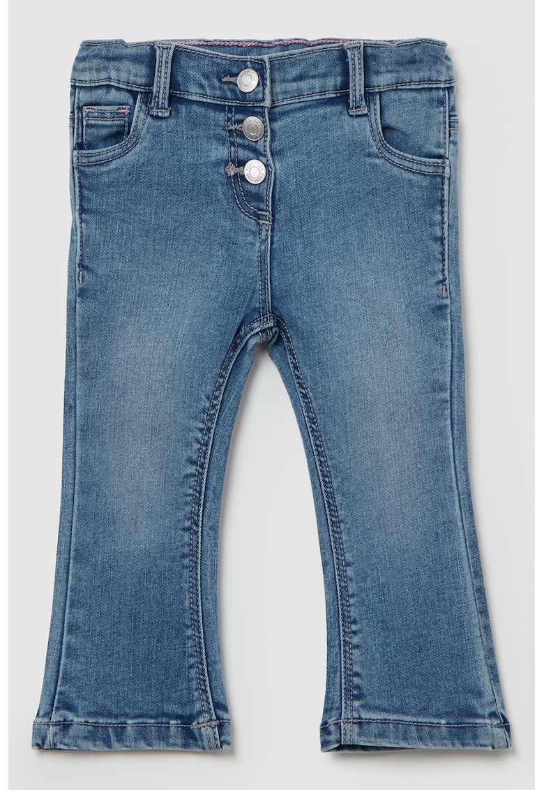 Caracteristici Tip produs: blugi Culoare: albastru inchis Material: denim Stil: casual Imprimeu: uni Croiala: evazat Talie: medie Buzunare: 5 Sistem inchidere: capse Colectie: primavara