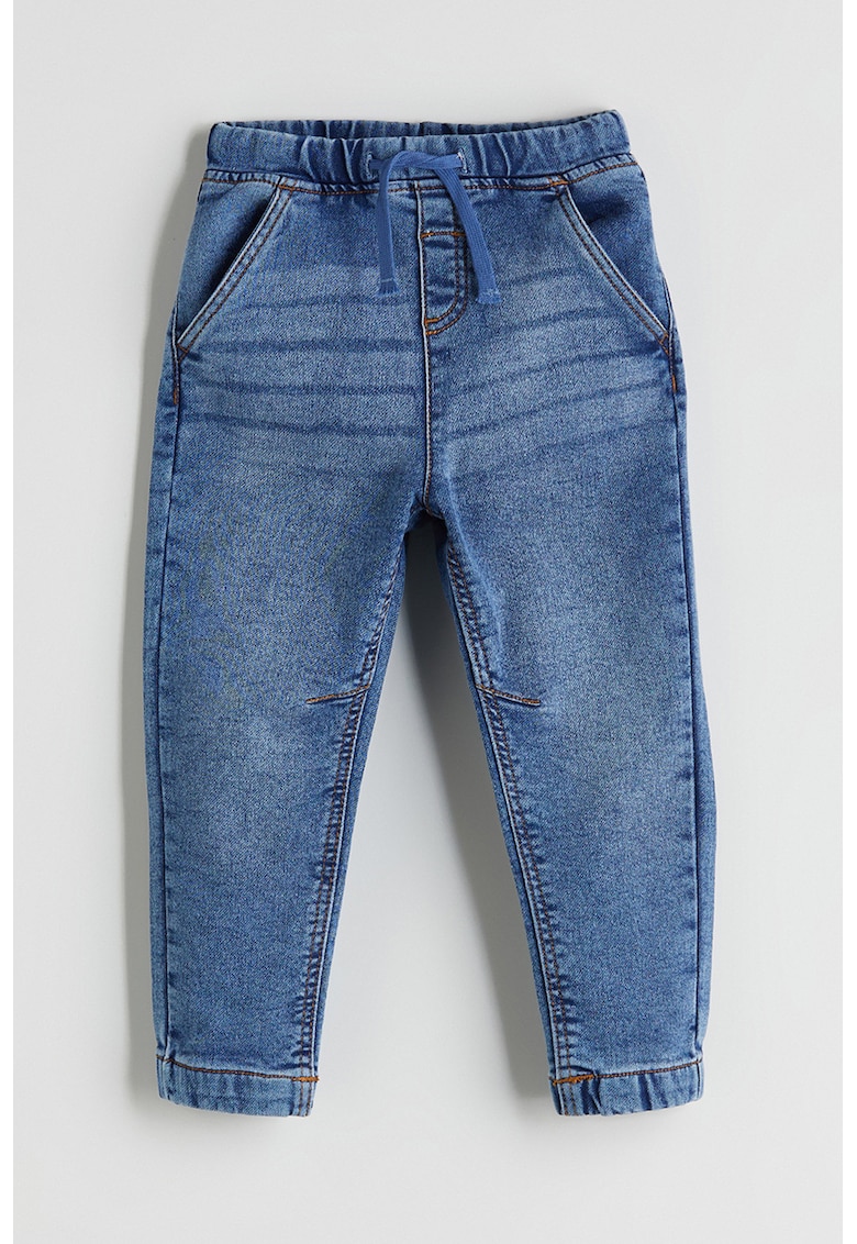 Caracteristici Tip produs: blugi Culoare: albastru Material: denim Stil: casual Imprimeu: uni Croiala: conica Talie: medie Buzunare: aplicate pe partea din spate