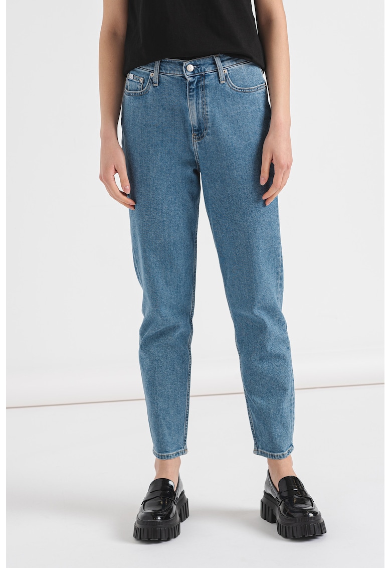 Caracteristici Culoare: albastru deschis melange Imprimeu: uni Croiala: mom fit Material: bumbac