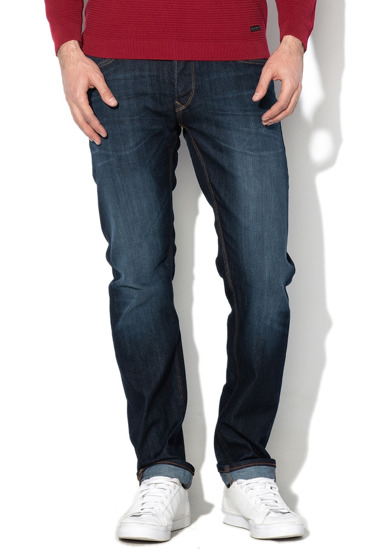 Caracteristici Culoare: bleumarin Material: denim Imprimeu: uni Croiala: regular fit Talie: medie Lungime: lungi Buzunare: 5 buzunare Sistem inchidere: fermoar Compozitie Exterior: 71% bumbac