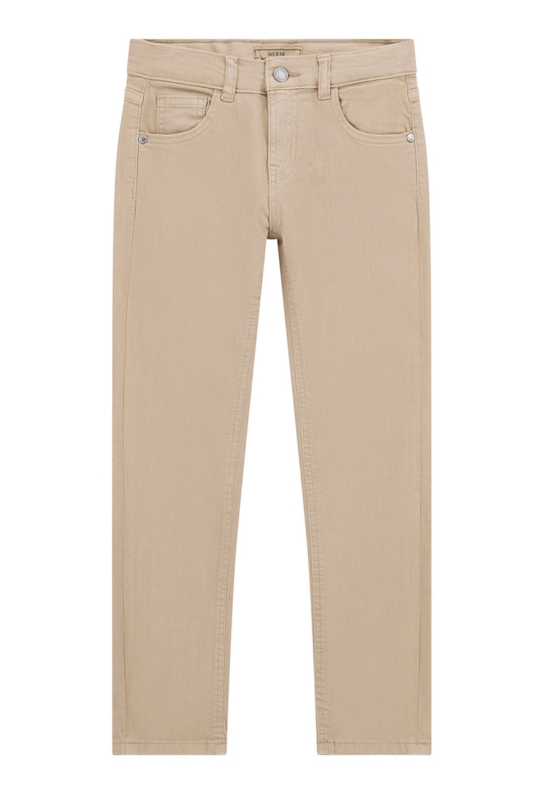Caracteristici Tip produs: pantaloni lungi Culoare: bej deschis Material: bumbac Stil: casual Imprimeu: uni Croiala: regular fit Talie: medie Buzunare: 5 Sistem inchidere: fermoar