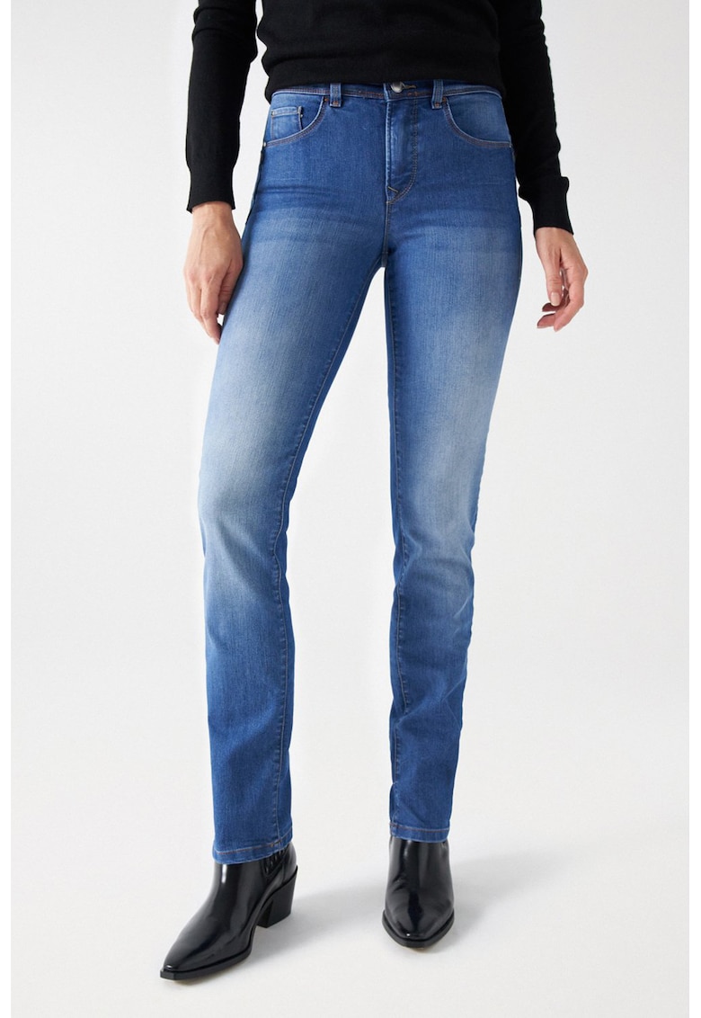 - denim Talie: medie Lungime: lungi Buzunare: 5 Sistem inchidere: fermoar Detalii: bucle pentru curea Compozitie Exterior: 75% bumbac
