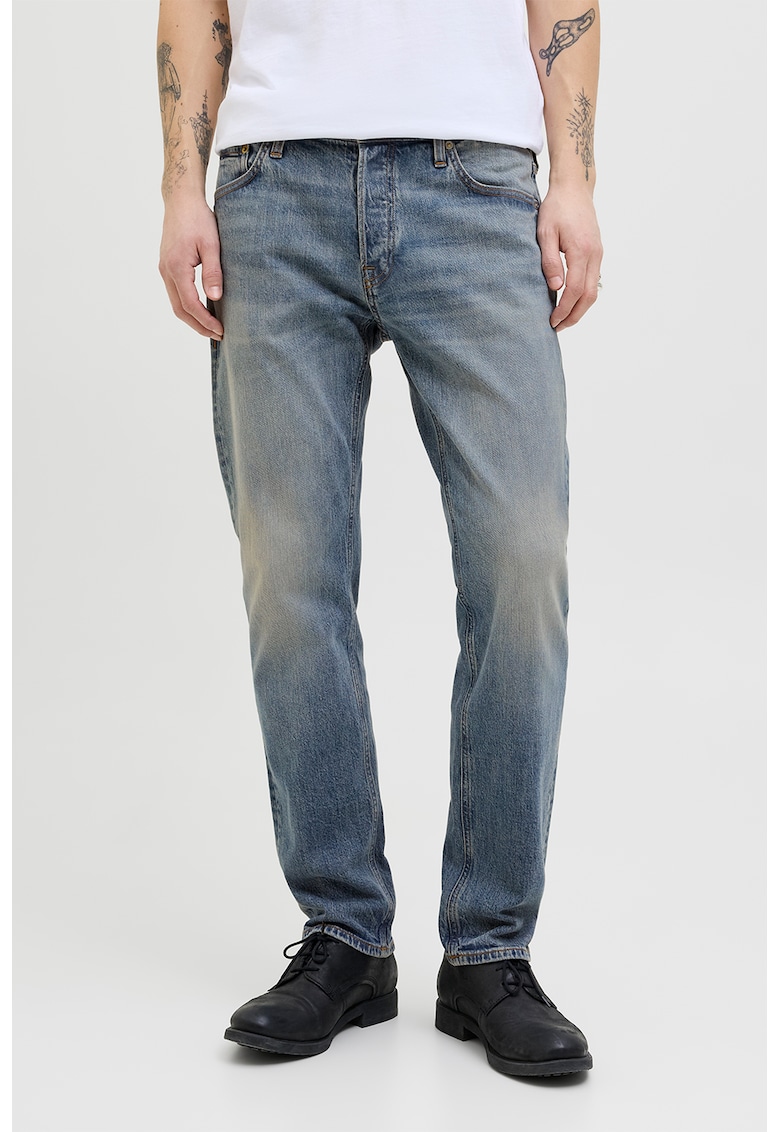 - alb murdar Material: denim Imprimeu: uni Croiala: regular fit Talie: joasa Lungime: lungi Buzunare: 5 Detalii: aspect decolorat Sistem inchidere: fermoar Compozitie Exterior: 94% bumbac organic
