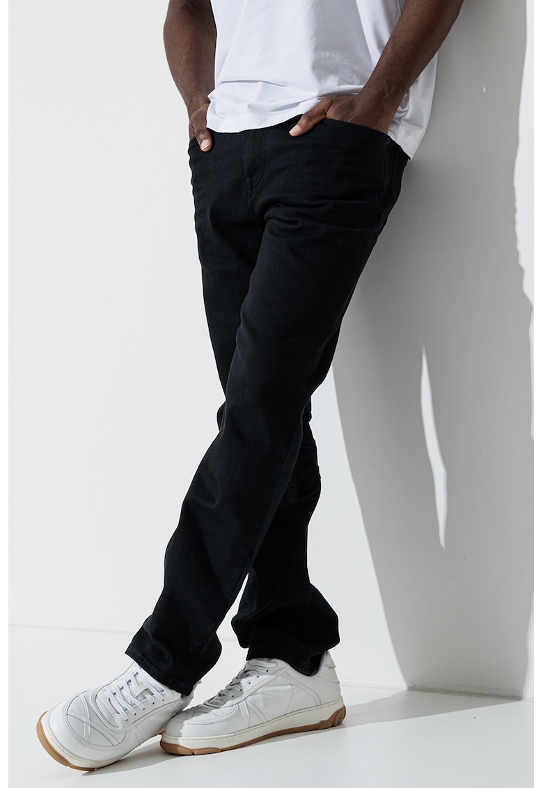 Caracteristici Culoare: negru Material: denim Imprimeu: uni Croiala: regular fit Talie: medie Lungime: lungi Buzunare: 5 buzunare Sistem inchidere: fermoar