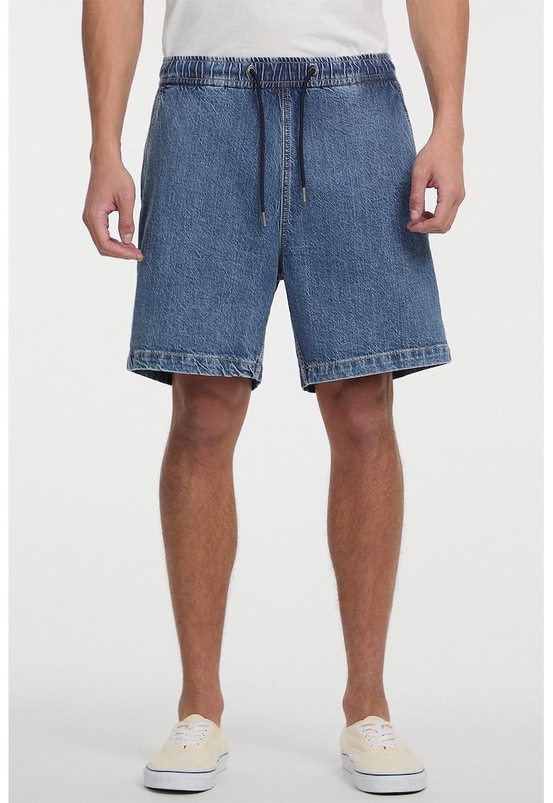 Caracteristici Culoare: albastru Material: denim Imprimeu: uni Croiala: relaxed fit Talie: medie Lungime: scurti Buzunare: in cusaturile laterale