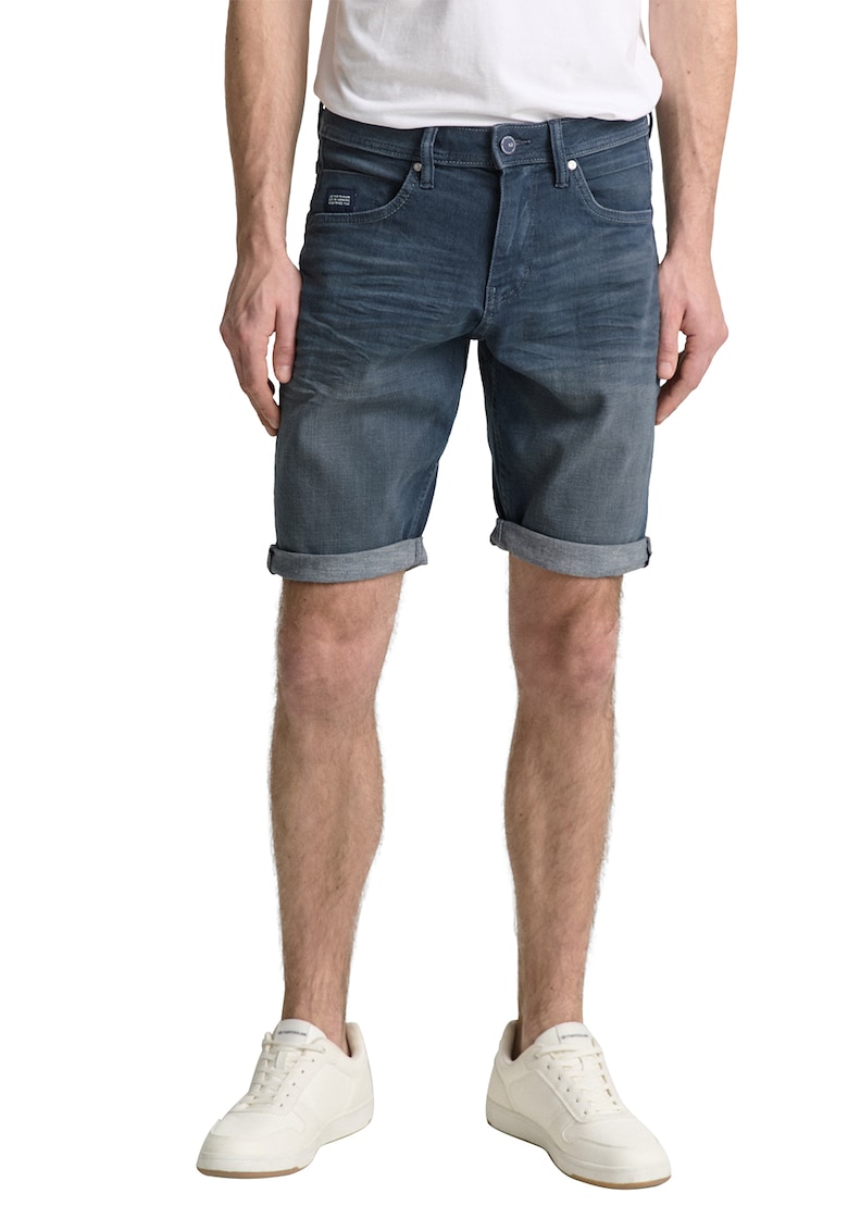 Caracteristici Culoare: albastru inchis melange Material: denim Imprimeu: uni Croiala: regular fit Talie: joasa Lungime: scurti Buzunare: 5 Detalii: aspect decolorat Sistem inchidere: fermoar Compozitie Exterior: 78% bumbac