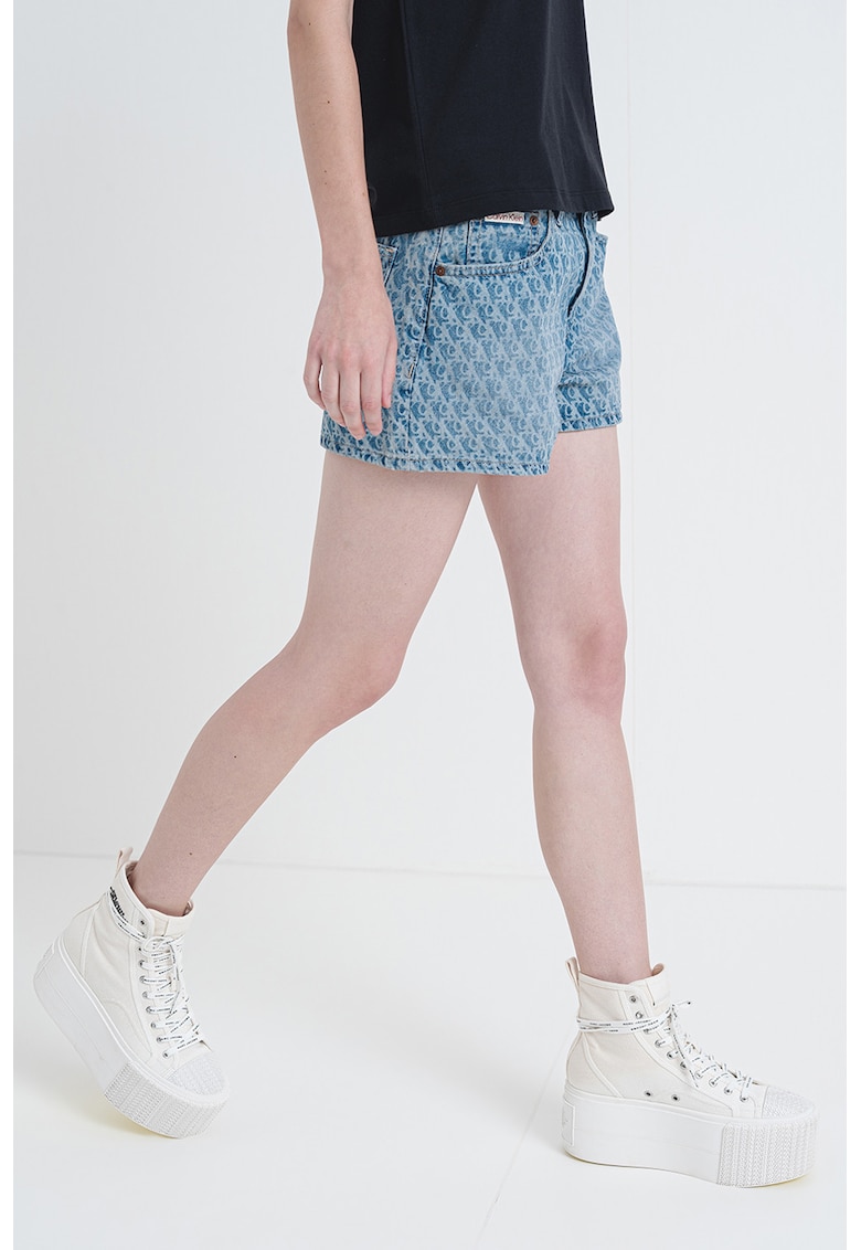Caracteristici Culoare: albastru melange Imprimeu: logo Croiala: regular fit Material: bumbac Talie: medie Lungime: scurti Sistem inchidere: siret Compozitie Exterior: 100% bumbac Info model Modelul poarta un produs de marimea 27. Marimi model: 177 cm inaltime