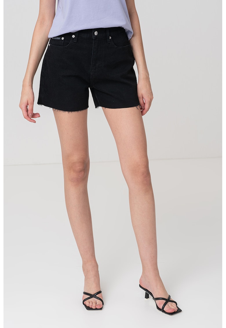 Caracteristici Culoare: negru Imprimeu: uni Croiala: dreapta Material: denim Talie: inalta Lungime: scurti Buzunare: 4 Sistem inchidere: fermoar Detalii: bci-better cotton initiative™ Compozitie Exterior: 94% bumbac