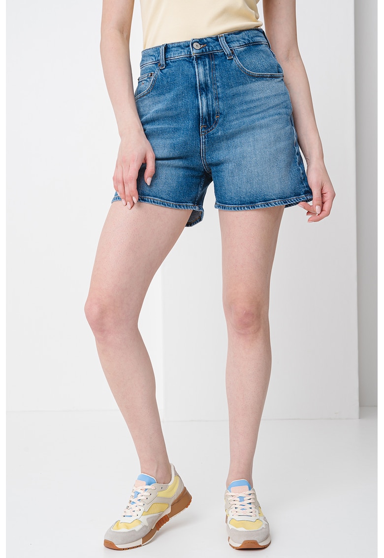 Caracteristici Culoare: albastru inchis Imprimeu: uni Croiala: regular fit Material: denim Talie: inalta Lungime: scurti Buzunare: 5 buzunare Sistem inchidere: fermoar