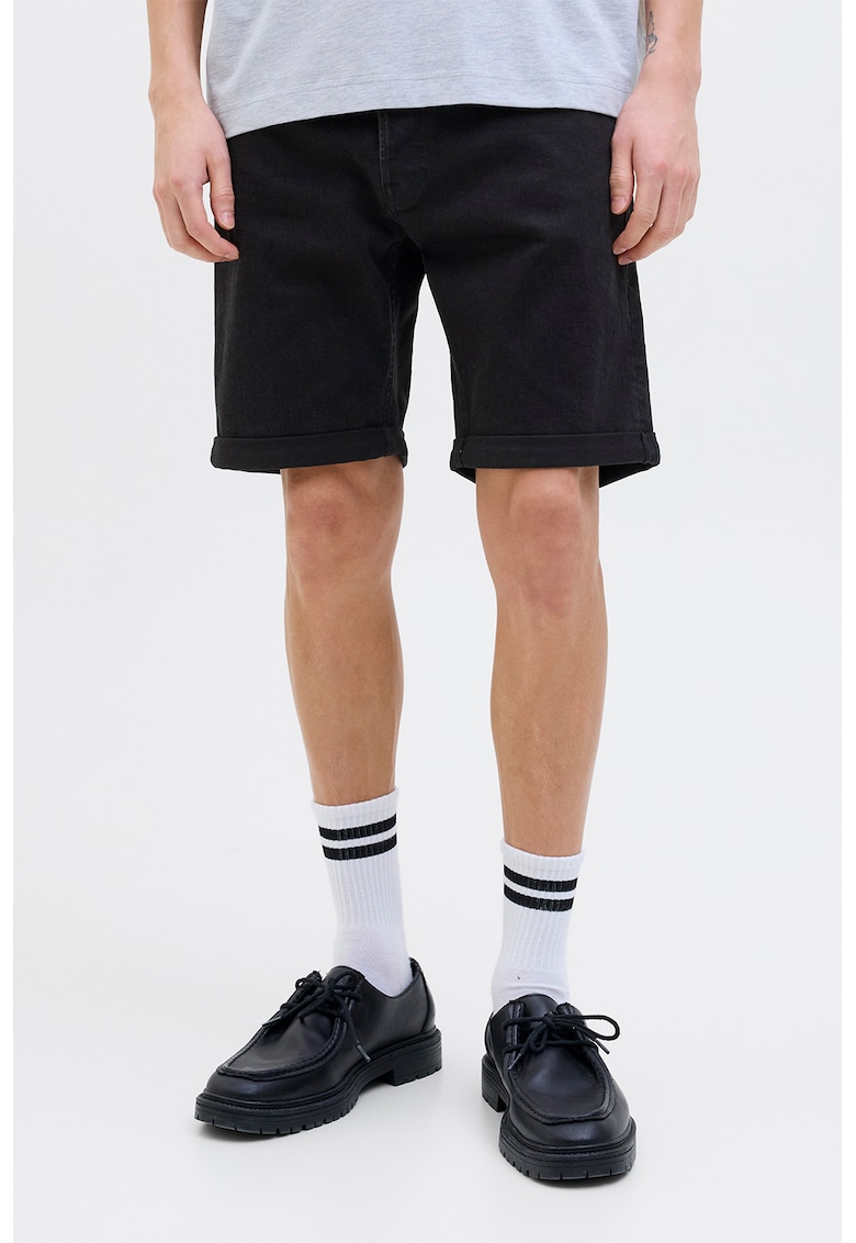 Caracteristici Culoare: negru Material: denim Imprimeu: uni Croiala: regular fit Talie: joasa Lungime: scurti Buzunare: 5 Sistem inchidere: fermoar Compozitie Exterior: 54% bumbac