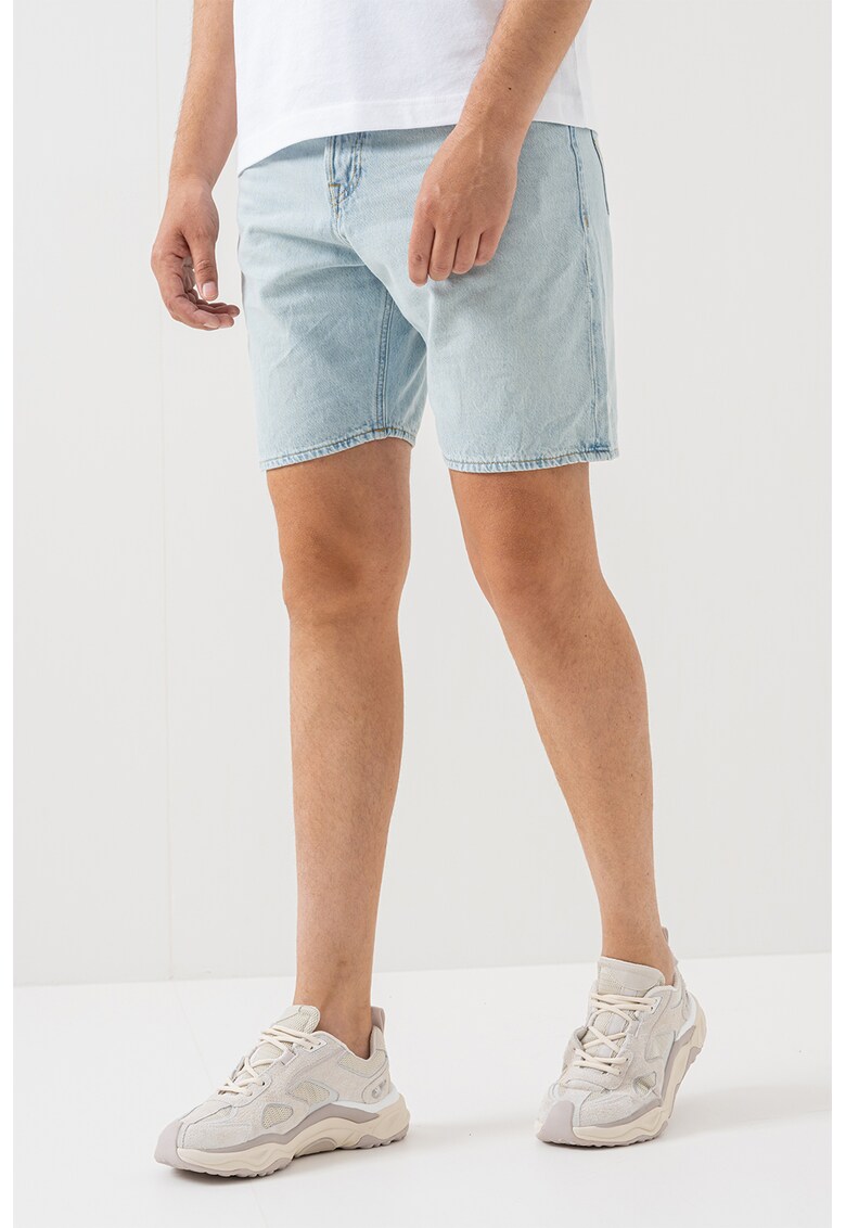 Caracteristici Culoare: albastru deschis Material: denim Imprimeu: uni Croiala: regular fit Talie: medie Lungime: scurti Buzunare: 5 Compozitie Exterior: 95% bumbac